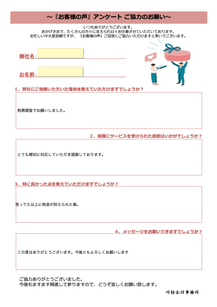 - お客様の声「(税務調査)対応が早く、大変助かりました」